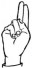 На ћирилици написано АНГЕЛИНА КОЈОВИЋ састоји се из 15 слова [?]. Исписано ћириличном једноручном азбуком за глувонеме: